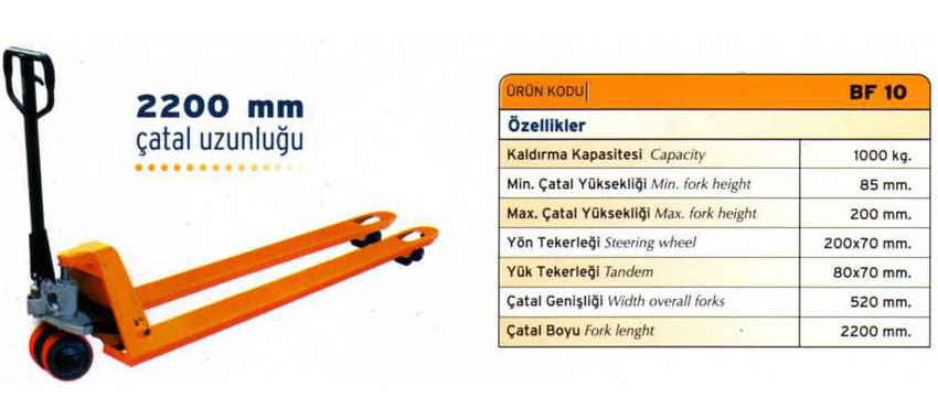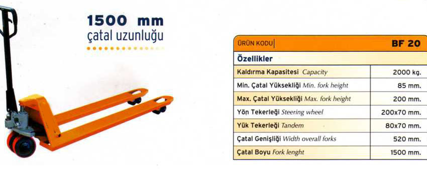 HİDROLİK TRANSPALET TAŞIMA KAPASİTESİ 1000-1500-2000