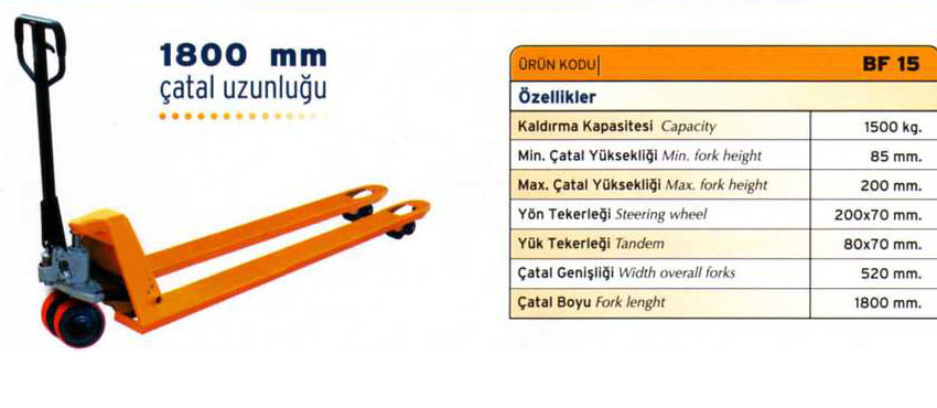 HİDROLİK TRANSPALET TAŞIMA KAPASİTESİ 1500 KG