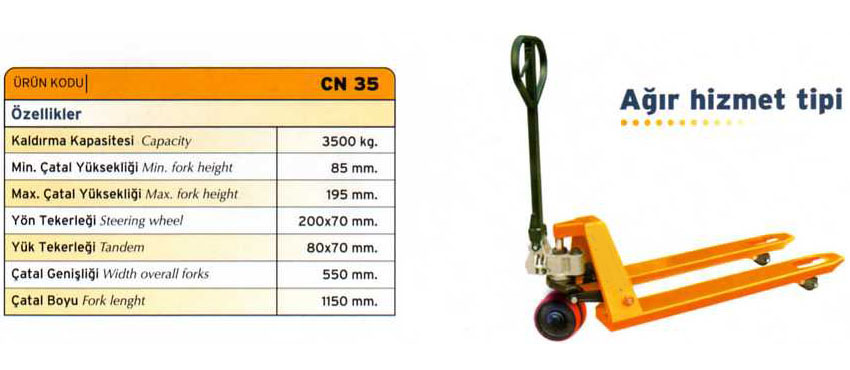 HİDROLİK TRANSPALET TAŞIMA KAPASİTESİ 3500 KG