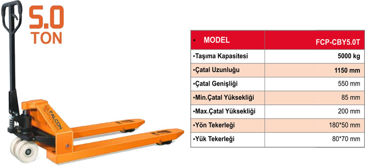 HİDROLİK TRANSPALET TAŞIMA KAPASİTESİ 5000 KG